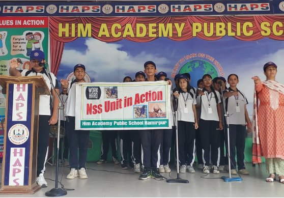 The moto ‘NOT ME BUT YOU’ of National Service Scheme (NSS) suits the most for holistic character development of schools, colleges and universities going students. It brings together the learning in the formal educational institutions and the real-world needs through voluntary community services offered by the volunteers NSS cadets. It fills them with a sense of civic responsibility towards the humanity and fosters leadership qualities when they involve themselves in community services like cleanliness drives, forestation drive and conservation of nature and awareness programmes like literacy drive, health awareness campaign and collective living. In a bid to build future citizens equipped with skills and values, HAPS Hira Nagar, Hamirpur has NSS Wing in the school since May 1st 2014.The students on the roll of NSS Wing take part in various activities organized under the aegis of NSS from time to time provides them a platform to utilized their energy to work for the mankind, respond to any emergency and to contribute in nation building voluntarily.